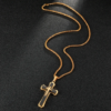 This one-of-a-kind cross necklace showcases a unique design that sets it apart from ordinary gold chains. The triple-layering features two radiant layers of 18k gold plating, with a striking black gunmetal layer nestled in between. This powerful contrast adds depth and dimension, resulting in a stunning, edgy, and sophisticated look that attracts attention without being overly flashy.